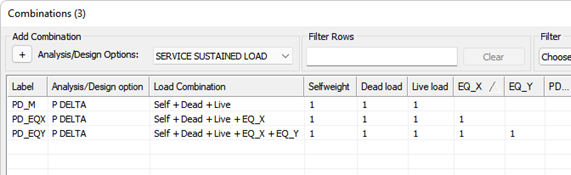 Multiple master combinations are automatically considered if they are set to ‘P-Delta’ and there is at least 1 additional combination that contains the same root set of load cases and factors.