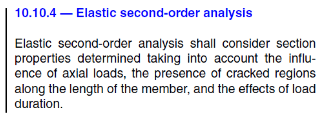 The 2008 edition of the ACI 318 code sets forth the following requirements regarding elastic 2nd-order P-Delta analysis: