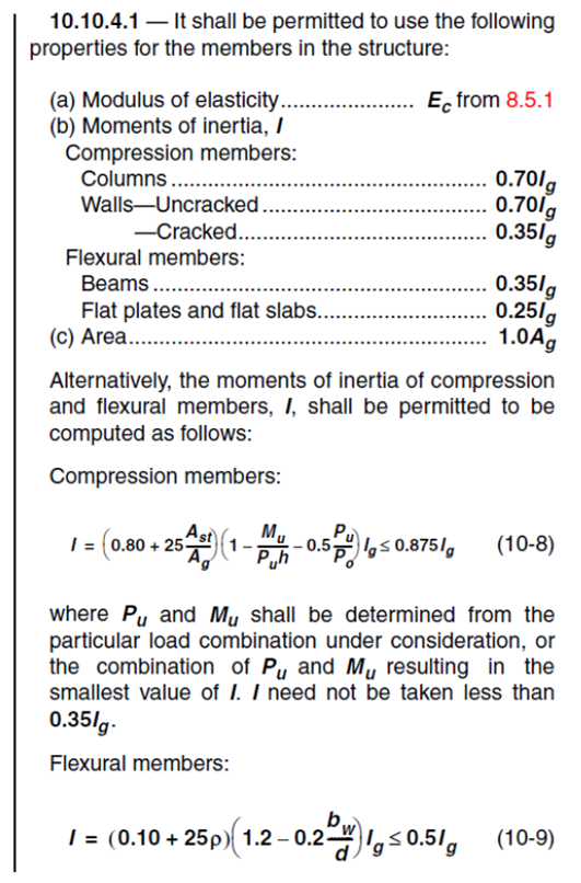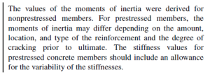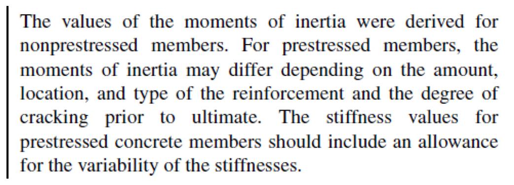 The above stiffness reductions are primary prescribed for nonprestressed members. For prestressed members ACI 318 states the following: