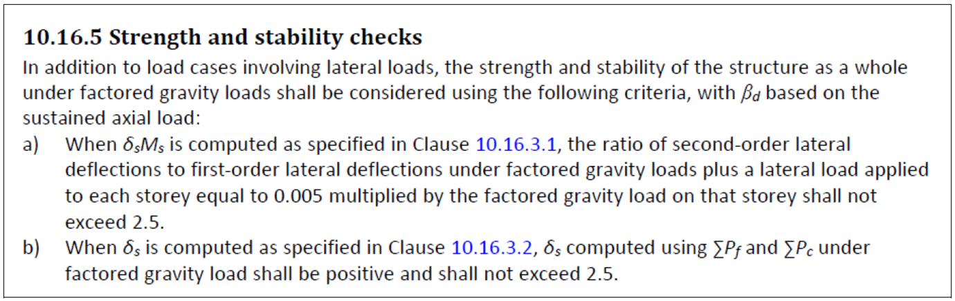 Australian code AS-3600 presents the following requirements regarding 2nd-order P-Delta analysis: