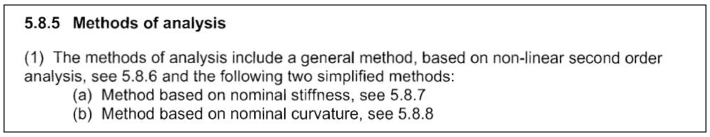 Eurocode 2 mentions the following methods of analysis of slenderness effects:
