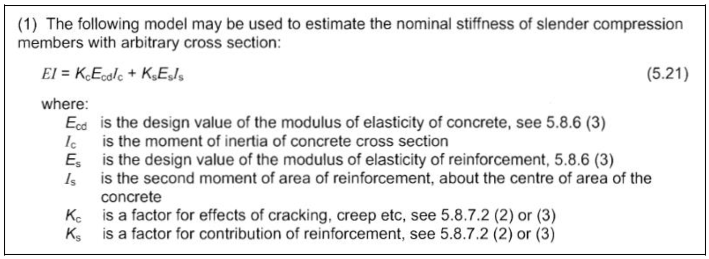 The nominal stiffness method (5.8.7) presents the following requirements regarding calculations of stiffness reductions of slender elements: