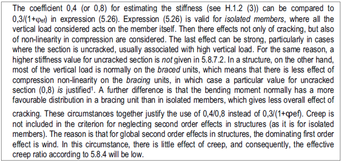 The use of these stiffness reductions is further elaborated in “Eurocode 2 Commentary” as follows: