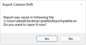 Upon selecting OK, the program will produce a message showing the path location of the XLS file and prompt you to open the file automatically. The file will open to the default application compatible with XLS files. This is typically Microsoft Excel® or another equivalent application.