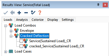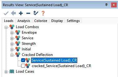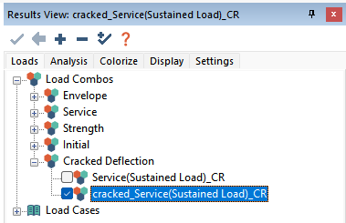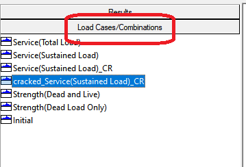 On the Loads tab expand the Cracked Deflection tree. The combination(s) you input, whose analysis/design option was set to cracked deflection, will be listed. Each user combination will have an accompanying cracked_ combination. The original named combination is for the uncracked state of the combination and the cracked_ prefixed combination will show the result of the combination considering the loss of stiffness due to cracking.