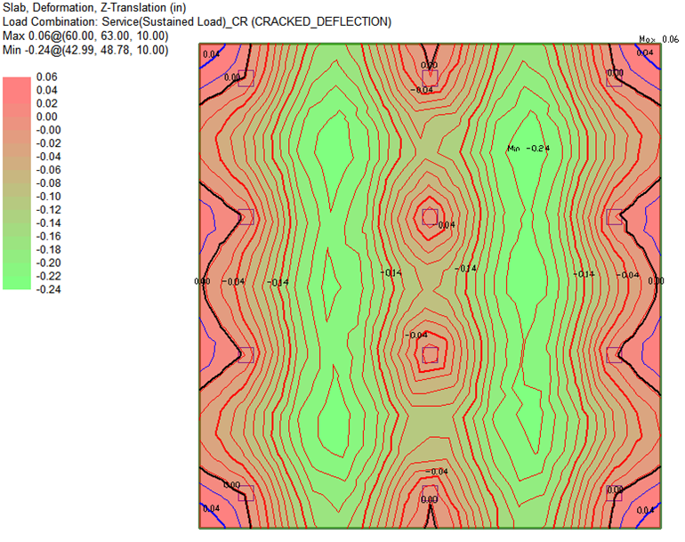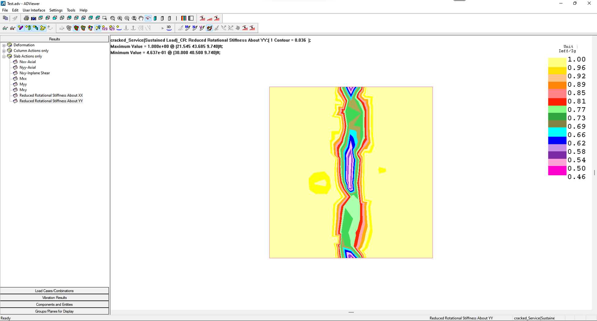 You can review the cracked deflection results using the Results View panel or through the ADViewer. In addition you can view the Reduced Rotational Stiffness contour plots as well.