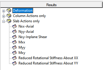 If the model includes beams, you can expand the Beam Actions Only tree, and select the Reduced Stiffness Ratio result for the beams as well.