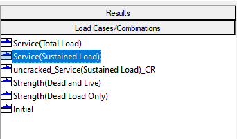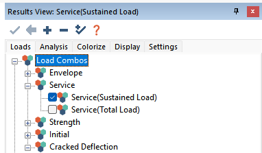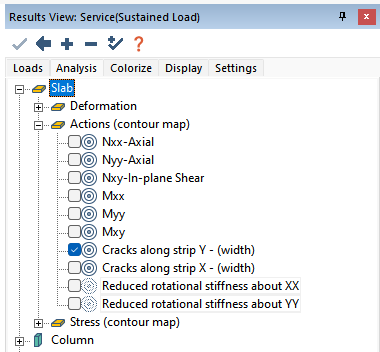 In the Results View panel click on the Load tab and select a service combination you want to view the crack widths for.