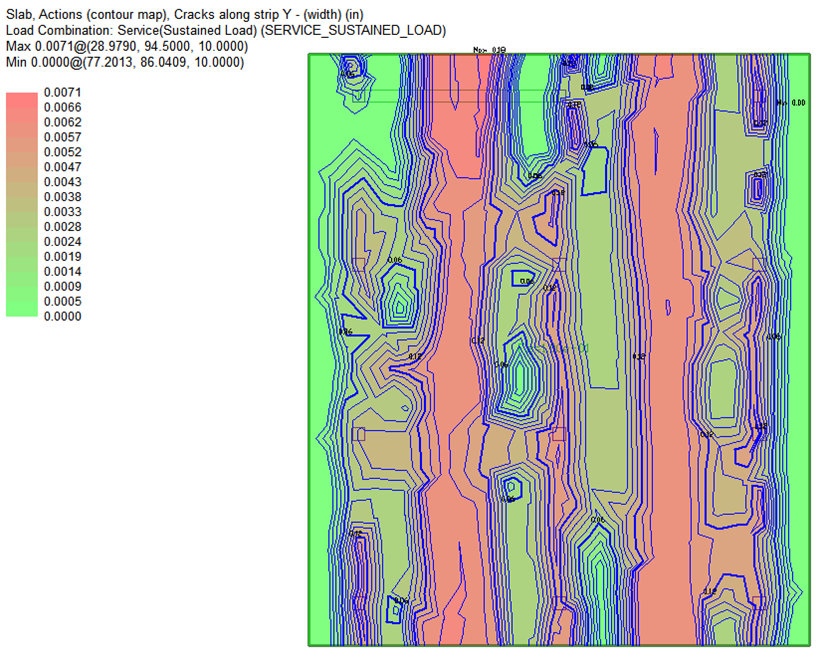 The crack width contours will show on plan.