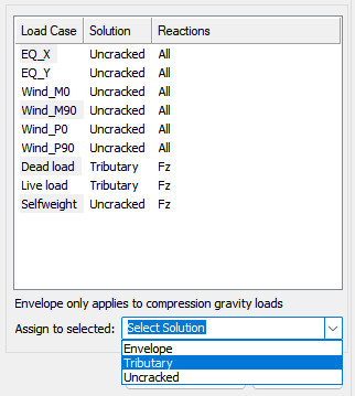 9. Do the same for each load case you want to set the solution result to use for the reaction. Alternatively, you can select one or more load cases and use the Assign to selected option to change the solution for all selected load cases.