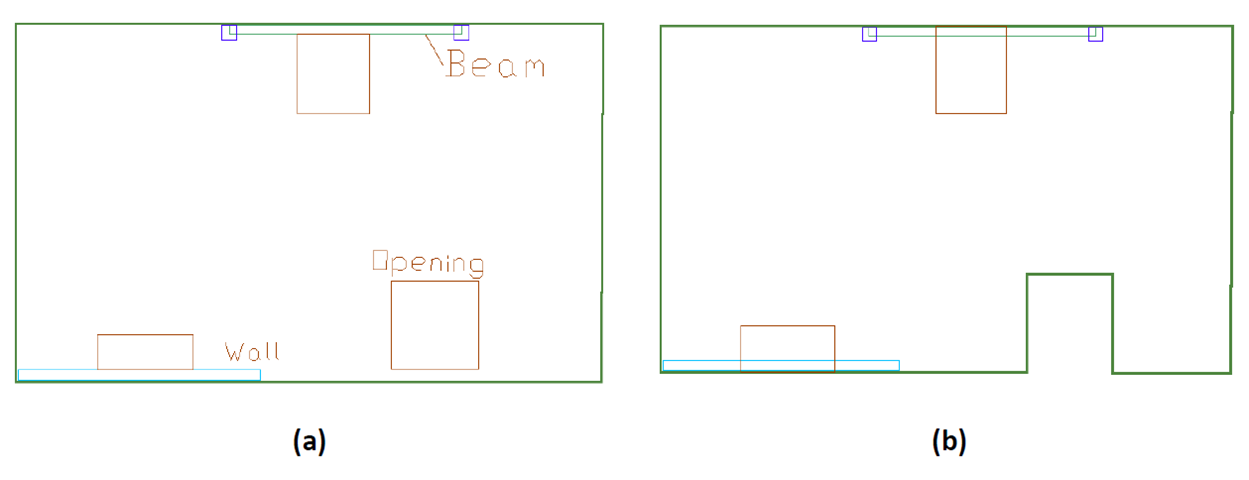 For purposes of analysis, it is recommended that you extend the side of the openings with perimeter walls or beams to the centerline of the walls or beams that form the opening’s boundary.