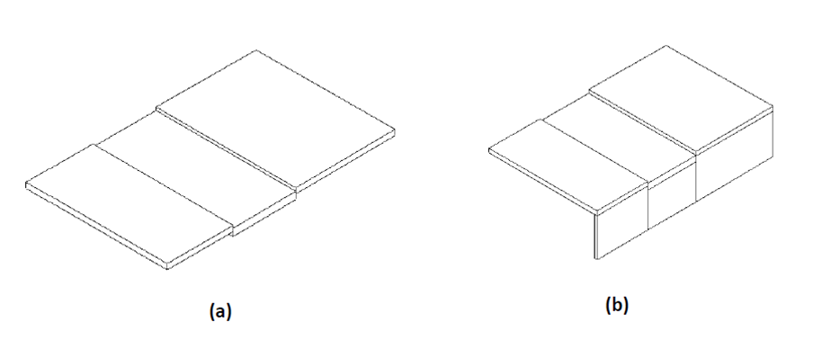 Where a wall or a beam is close to a multiple discontinuity (jaggedness) at slab edge or opening, as illustrated in the image below, it may become necessary to break the wall up into sections. This is mostly the case, where the structural modeling is not done accurately, and a condition as shown in the figure below arises. The breakup is only necessary (i) if there is more than one protrusion or cut out along the slab edge, and (ii) if you invoke the node shift option of the program. When the node shift option is invoked, the program attempts to shift the analysis axis of the wall/beam onto the slab edge or opening. If the slab edge has many discontinuities, it would not be possible to line up the wall axis with more than one segment of the slab edge (or opening). For this reason, the wall has to be broken down into segments as shown in part (b) of the figure. The number of segments should correspond to that of the slab edge/opening adjacent to the wall/beam. Again, it should be noted that the breakdown of the wall is not necessary if the shift node option is not used. Also, for the analysis, the program will automatically consider the subdivided pieces of a wall/beam as a whole. In other words, the breakdown of a wall/beam into segments does not impact the solution, nor the treatment of the wall/segment as a contiguous member in resisting the load.