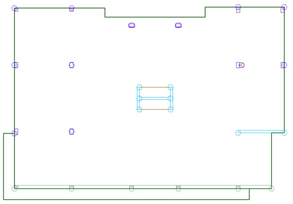 Click the Apply button. You will now see the symbol (hexagon) for the analysis nodes at the ends of walls and beams and at the centroid of the columns, as shown below. Note the symbol size for the components have been increased to 15in in the below figure to exaggerate their size for clear display in the image.