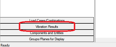 Make sure you have a single load combination selected in the Loads tab. If an envelope combination is selected the vibration results will be inaccessible. In the example below we have chosen the Service (Total Load) load combination.
