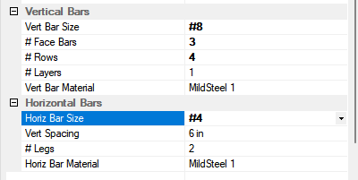 Modify the section properties as needed. You can see the modifications made in this example below. Note the changed properties are shown in bold.