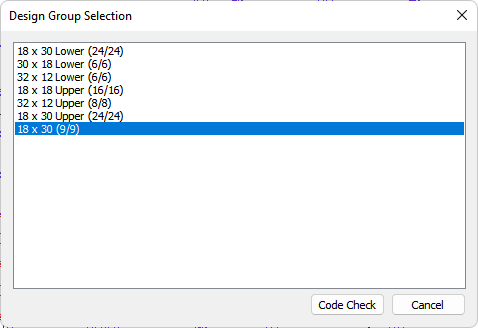 Highlight only the new 18 x 30 section type and click the Code Check button.