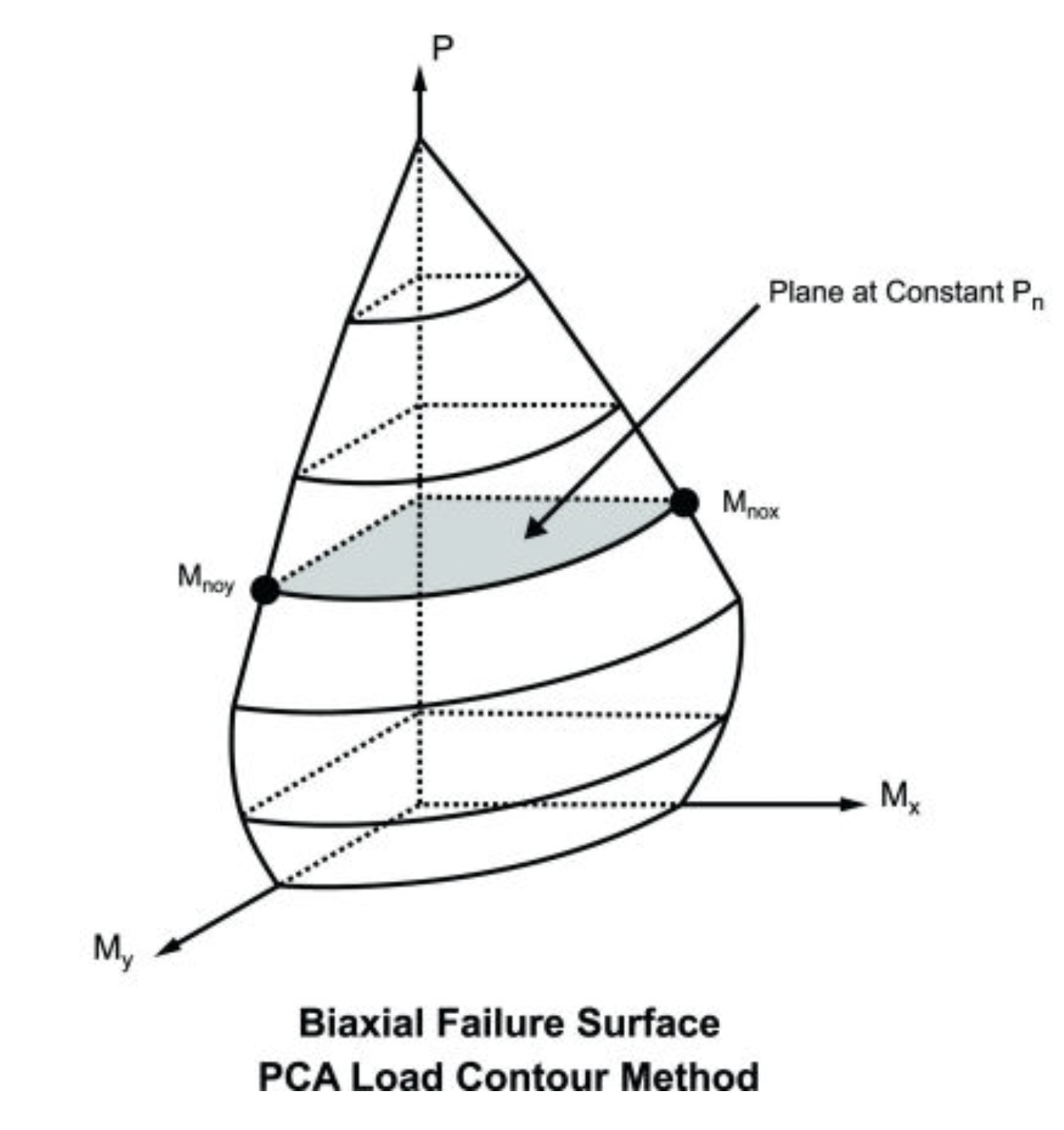 ADAPT-Builder uses the PCA Load Contour Method for the code check of columns. The PCA Load Contour Method is an approximation based on the uniaxial failure conditions and the Parme Beta factor. A good reference on the Load Contour Method is chapter 12 of the PCA Notes on ACI 318-99.