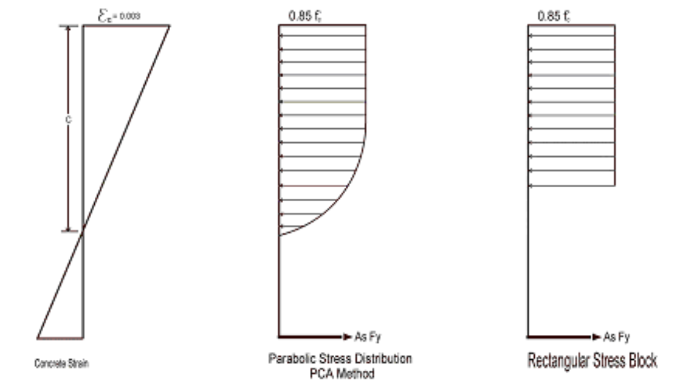 You can specify whether you want your concrete design to be performed with a rectangular stress block, or with a more accurate parabolic stress block. While most hand calculations are performed using a rectangular stress block, the parabolic stress block is more accurate. In fact, most of the PCA design aids are based upon the parabolic stress distribution. A good reference on the parabolic stress block is the PCA Notes on ACI 318-99.