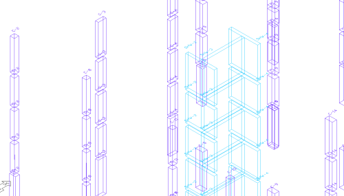 Move to multi-level mode and turn on all columns and walls. We can see each segment of the column or wall stack now has the same label as was assigned to the lowest segment in the stack.