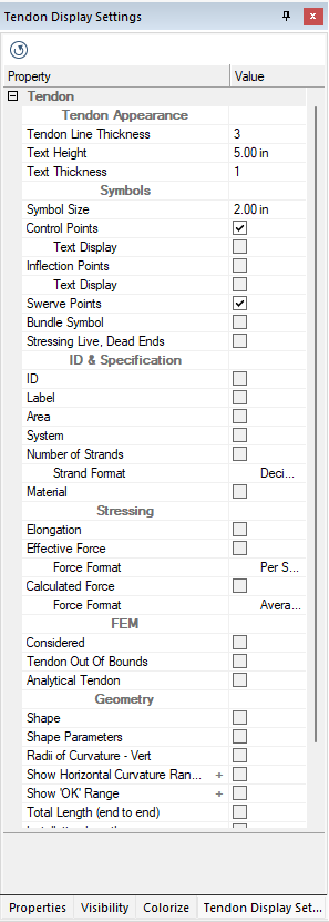Make the selections in the Display Manager to coincide with the information you want exported with the tendons to the DWG/DXF file. An example is shown in the image above.