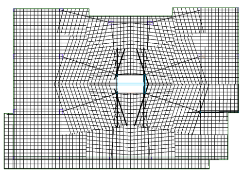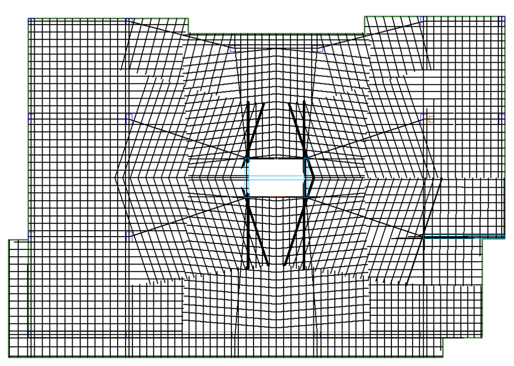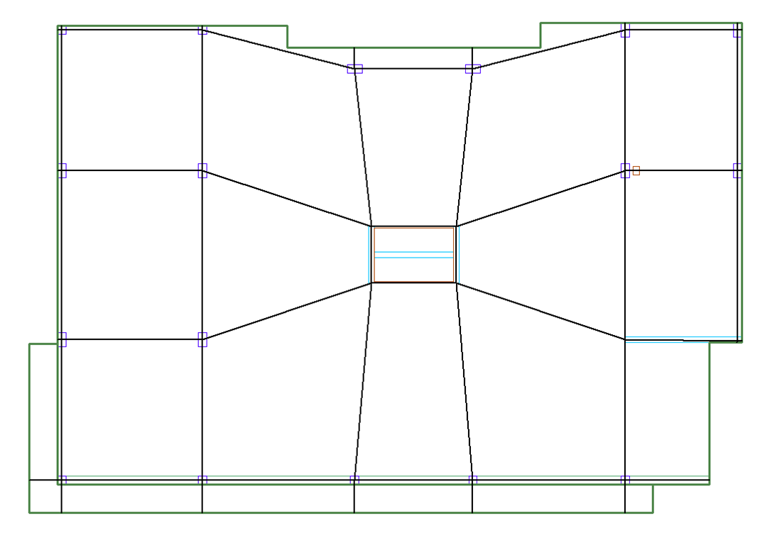 To generate design sections, first enter the support lines in the model. For more information on entering support lines please view the Support Line topic of this help menu. The figure below shows an example of a model with support lines generated in both directions.