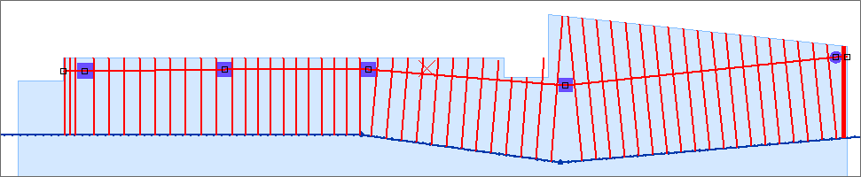 The Font Size options allows you to set the font size for the text showing the tributary region limit setting in the model. The following example shows a mixed set of support lines with different limit conditions. Note that the colorized indication is only active while in the Dynamic Support Line Editor. Example: Mixed support lines with different limits Click on image to enlarge it |