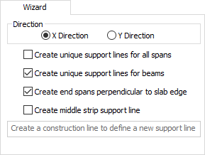 The following table provides descriptions of the options available when using the Wizard to create middle strip support lines.