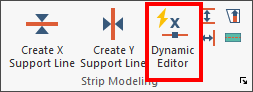 This Support Line Dynamic Editor is found at Floor Design > Strip Modeling. Manual creation of support lines is still available through the use of the Create X and Create Y Support Line tools.
