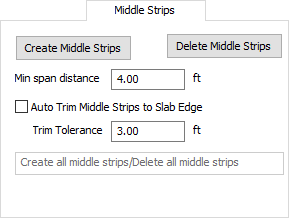 The Middle Strips tab allows you to set, create, or delete middle strips. When you create middle strips, you can also choose whether to automatically trim them to the slab edge.