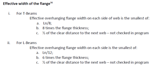 The program includes effective flange formulation for three design codes: ACI 318-14, ACI 318-19, and EC2. All design codes will default to the ACI methodology expect for EC2 and NBR codes. You can also manually generate splitters or use max tributary offset input for the design strip to manually define flange widths.