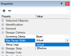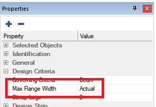 In the Properties Grid expand the Design Criteria tree and locate the Max Flange Width input option.