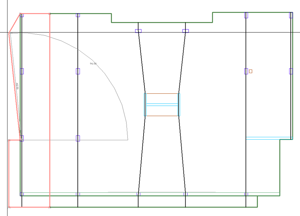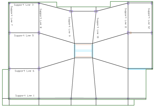 Repeat steps 3 through 9 to enter the rest of the tributaries into the model. An example of completed tributary regions for the Y-direction support lines in our example model is shown below.