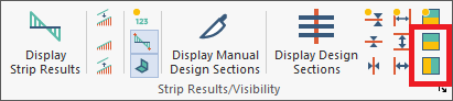 Once the process is completed, go to Floor Design> Strip Results/Visibility and click on either the Display/Hide Support Line Tributaries in X-direction or Display/Hide Support Line Tributaries in Y-direction icon as marked below.