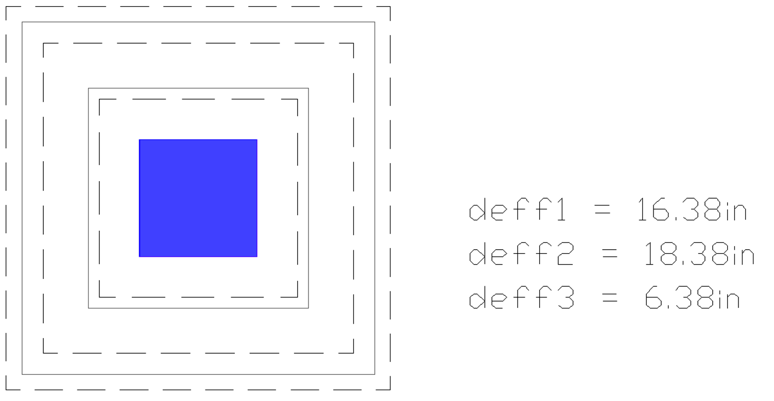 The Punching Shear check considers both Drop Caps and Drop Panels when creating critical sections for the Two-Way Shear Design. Whether modeling a Drop Cap, a Drop Panel, or a Drop Cap within a Drop Panel, the critical sections will be considered at the support, at the Drop Cap, and at the Drop Panel, when performing a punching shear check.