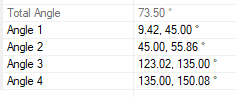 Total Angle reports the total and all angles from the positive 'r' local axis direction counter-clockwise to the projection ray of the opening corners. These angles are used in determining the length of reduction for critical sections that pass-through the projection ray of the openings within the opening radius of detection.