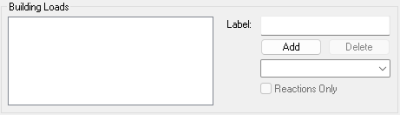 Building Loads -This section includes Building Load Cases which are wind and earthquake loads applied through the Wind Load and Seismic Load wizards. Building load reactions are calculated only in a multi-story analysis but can then be reapplied to a single level analysis.