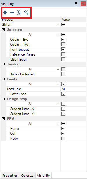 At the very top of the Visibility Grid are a few icons. The first two icons are the Expand All and Collapse All, next is Refresh, the last two are Save as Default and Default Display.