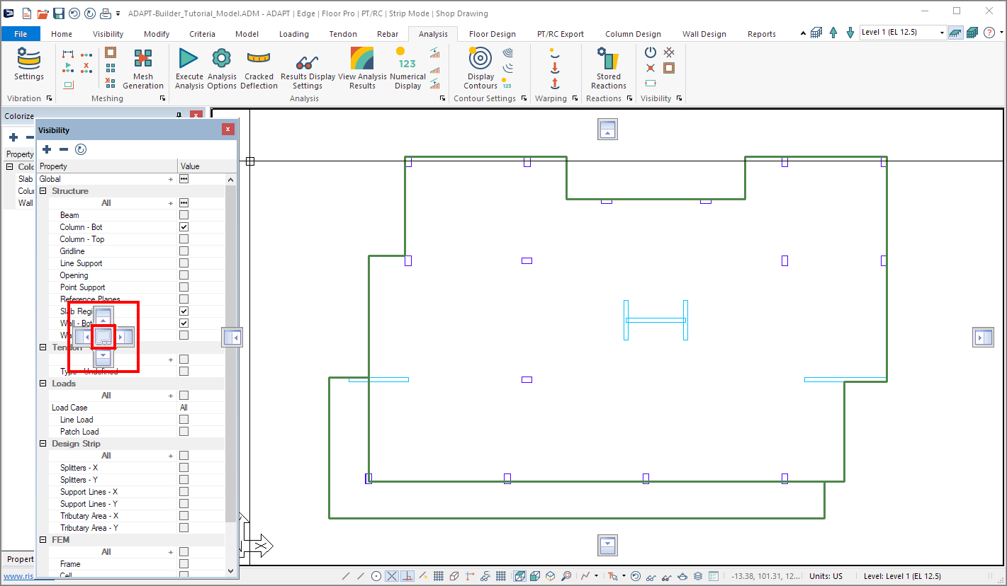 In our example, we closed the Properties grid panel, so we opened the Visibility ribbon.