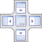 The Dock feature can be used to re-dock a floated panel or to merge panels together either in a tabbed layout or stacked side-by-side or top-to-bottom layouts. These docking capabilities can be accomplished using one of three methods; dragging by heading label, dragging by a panel's tab or using a right-click menu. All three methods allow you to choose the dock layout you want, rather it be docking the panel within a merged tabbed panel set or docking it to a position (left, right, top or bottom) inside or outside of any panel currently displayed in the program's work area. As you drag a panel to either re-dock it or merge it with another panel, several icons appear showing you the positions you can choose from. The location of the icons indicate where the floated panel will be positioned in relation to the whole work area panel or the panel being hovered over. The following image shows the various docking icons, while the following table describes their results.
