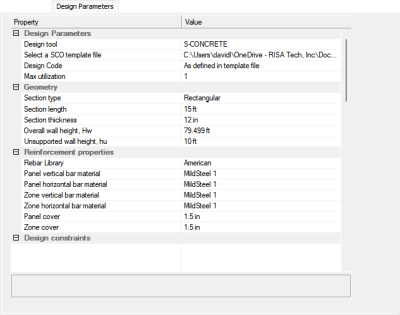 Open an S-Concrete wall model and set the design parameters to use for the wall design including the design code to design by.