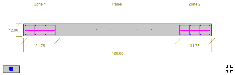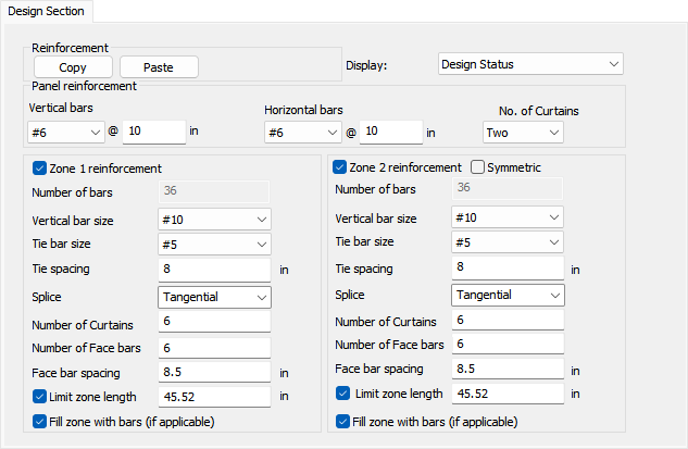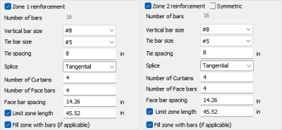 If zones are considered for design and symmetric is selected, Zone 2 becomes disabled and takes on the same reinforcement as defined for Zone 1. |