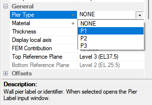 In the Properties Grid > General section click on the Pier Type drop down menu and select the pier label you want the wall assigned to the group of selected walls.