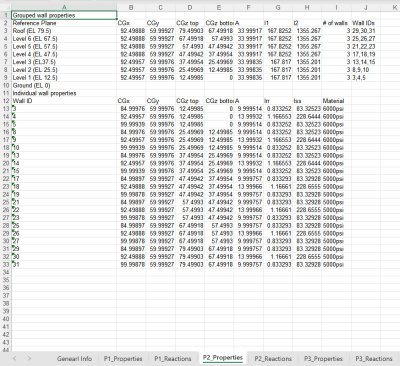 After completion of the analysis of a model, wall pier results can be produced. Note these results are different than those for the design of wall design sections and are primarily the wall pier geometric and physical properties as well as pier reactions for the last run model analysis. Wall pier results can be produced Graphically or as a Microsoft Excel® data file in .XLS format.