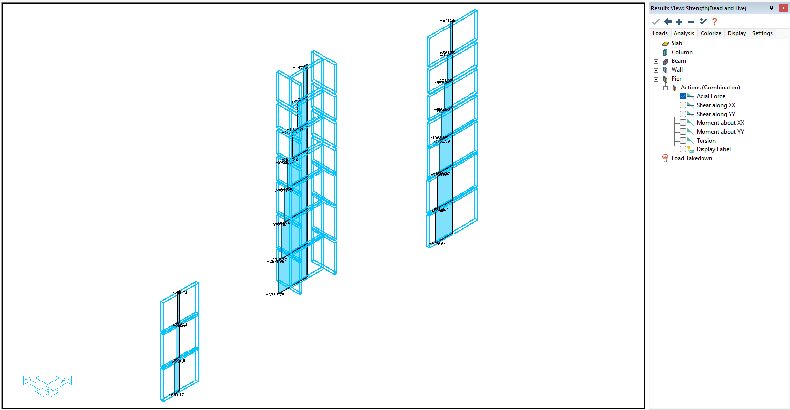 The image below shows the Axial force in the wall piers.