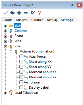 Graphical pier results are selectable in the Result Viewer selection tree under the Pier section.