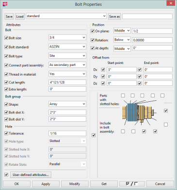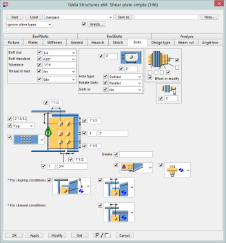 If the hole dimensions are defined explicitly an warning will be generated and RISAConnection will default to a STD hole. RISAConnection bases the standard hole size (STD) and slotted hole sizes on values taken directly from the AISC steel manual. Again, if you input dimensions directly they will not be used.