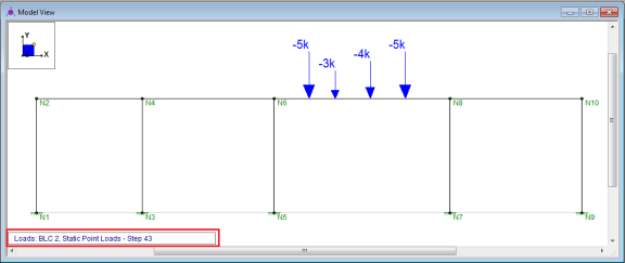 However there are times when you may want to investigate the full model design (all member results, detail reports, deflected shape, etc.) at a specific step. You can easily create a static load case of the moving loads at a specific load step using the Point Loads from a Moving Load feature.