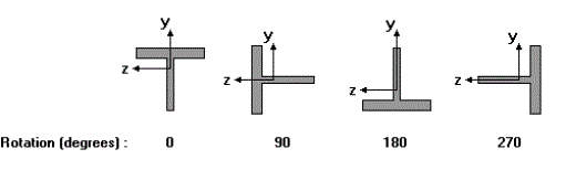 The Rotate column is used to define the orientation of the member cross-section. You may specify 0, 90, 180 or 270 degree rotations. See Member Local Axes and Defining Member Orientation for more information.