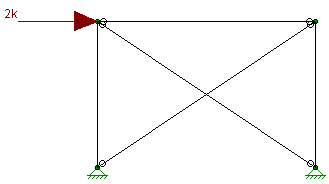 In subsequent solutions members can have their stiffnesses both removed and added back in. Reducing the stiffness of members is the identical process just explained. Adding member stiffness back in can occur for members that have been previously reduced. The program will look at the distance between the end nodes which define the previously reduced member. From this distance the program can calculate whether that member would now be in compression or tension. Let's take a tension-only member that had it's stiffness reduced due to the presence of compression in the first iteration. In the 2nd iteration if the distance between the nodes defining the member got longer than it was in iteration one, this would signify that the member would now be in tension. Thus, for the next iteration the program would place this member back in the stiffness matrix.