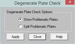 The program cannot provide a solution for plates which are poorly shaped or not planar. If any such "degenerate" plates exist, an error is produced during the solution. Use the Degenerate Plate Check utility in the Tools menu to fix these issues.